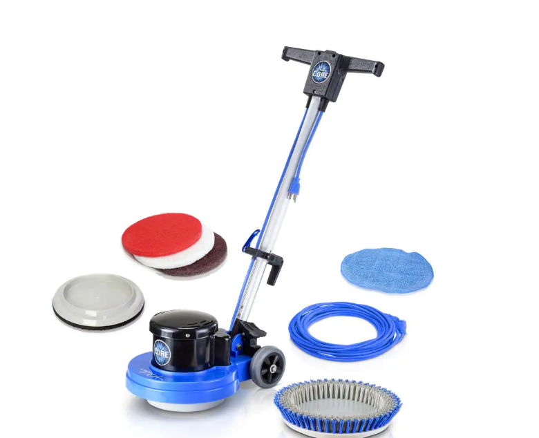 Introducing the New Prolux Core Commercial Light Weight, Heavy Duty 13 in. Floor Buffer with heavy duty scrub brush, waxing, stripping, polishing pads and microfiber cloth. Comes equipped with a 5 Year Warranty and an industry first Industrial grade telescopic wand that makes height adjustment easy and ensures the perfect fit for any size user. This is a feature not typically found on Commercial floor buffers. The Core includes a 50 ft. commercial grade extension cord and is versatile enough that it can handle anything It strips, waxes, buffs, sands and refinishes any floor surface. No matter what type of floor, even Carpet, Wood, Marble, or Vinyl. With the included Heavy-Duty scrubbing brush, you can make quick and easy work of dirt build up on most hard surfaces from Tile to Concrete and any other industrial surface. For more delicate surfaces like laminate, hardwood, gym floors, or even carpet, you can choose between the Soft Scrub and Medium Scrub scrubbing brushes (not included). The Prolux Core strips, waxes, buffs, sands, polishes, refinishes any floor surface. (Stripping, Sanding, Mopping, Polishing pads not included).